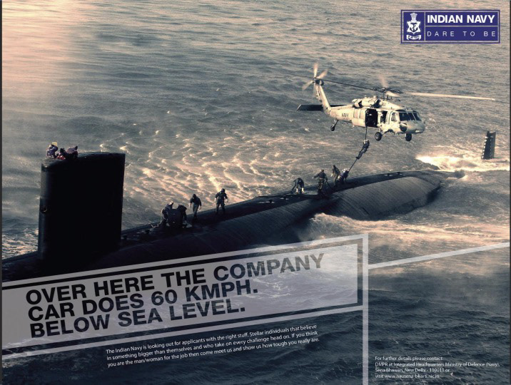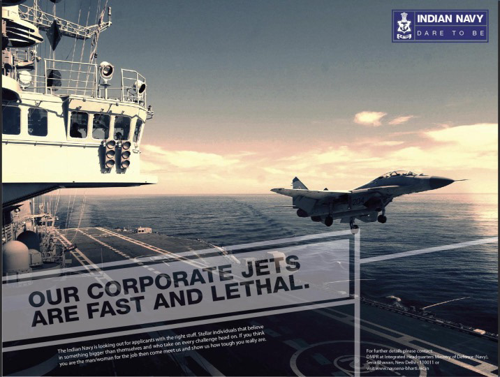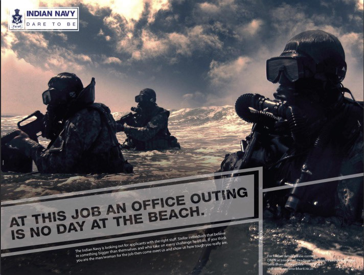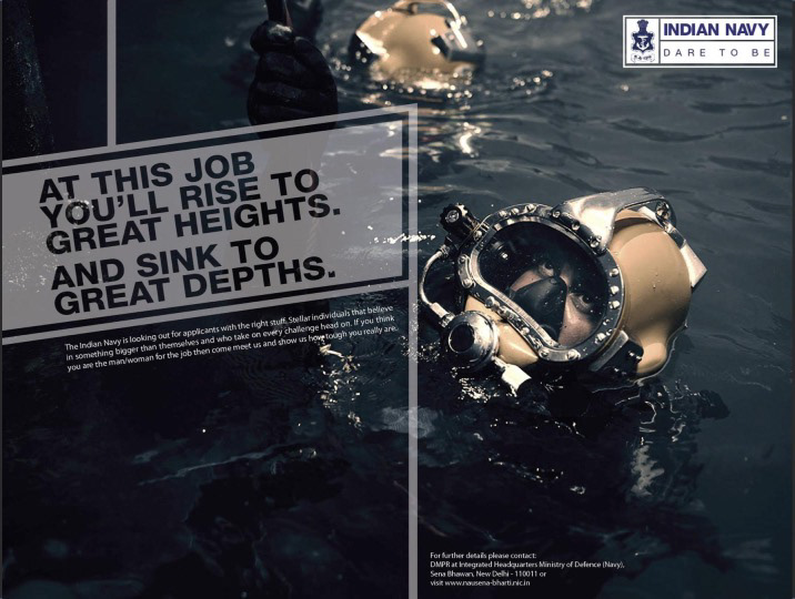 That was my initial thought when briefed on the project for the Indian Navy. Taking cues from what drove a career focused individual to craft a headline that was both witty, aspirational and when combined with an action driven visual we delivered a campaign that was to the brief yet creative and definitely one that stoked the imagination.