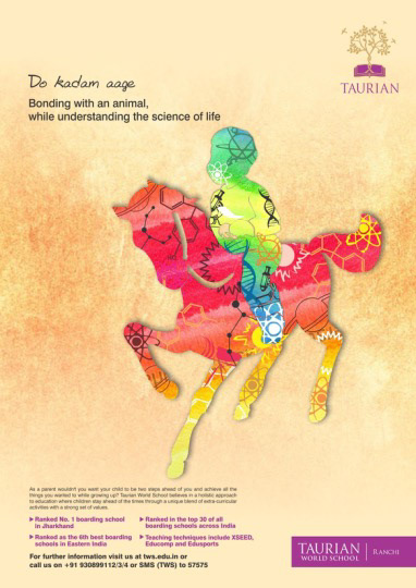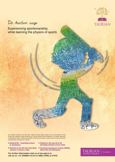 The concept behind the series of advertisements presented here was to combine conventional knowledge forms with real world learning. For example playing sports whilst learning the aspects of physics. Hence, the theme of these ads was aptly named, ‘Two steps ahead’.