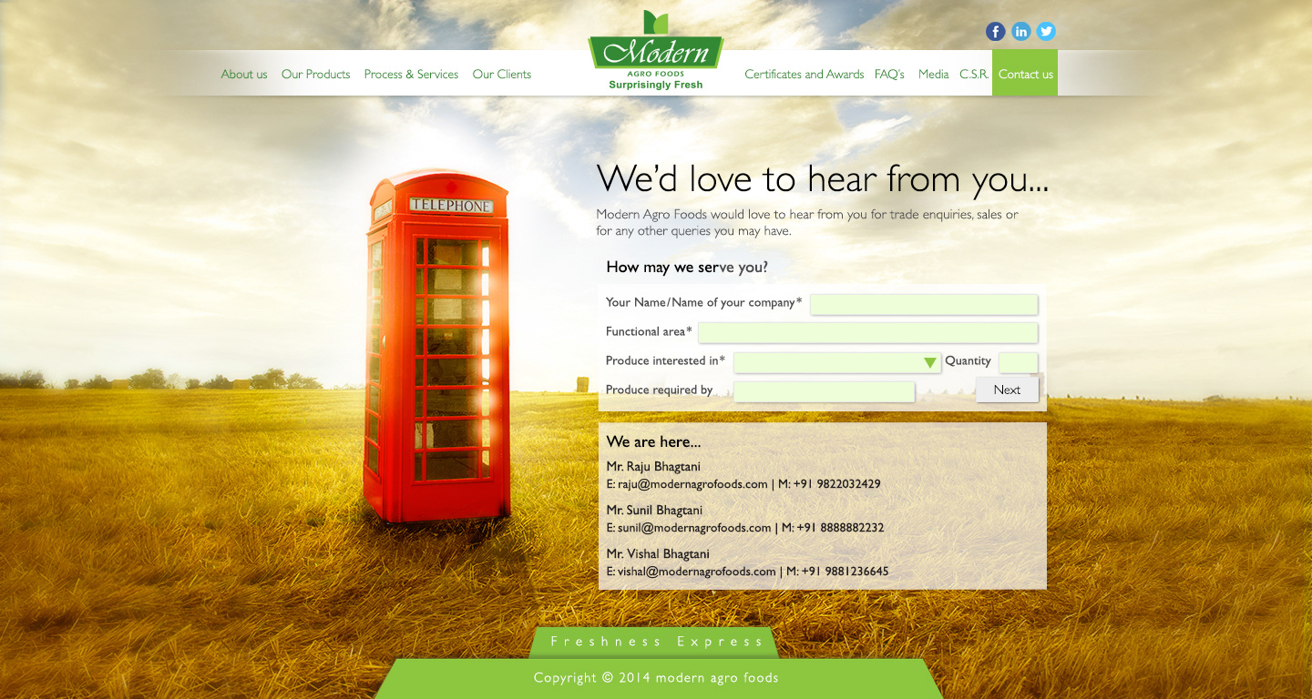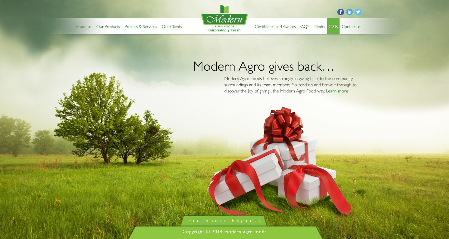Website concept designed and copy written for Modern Argo Foods.